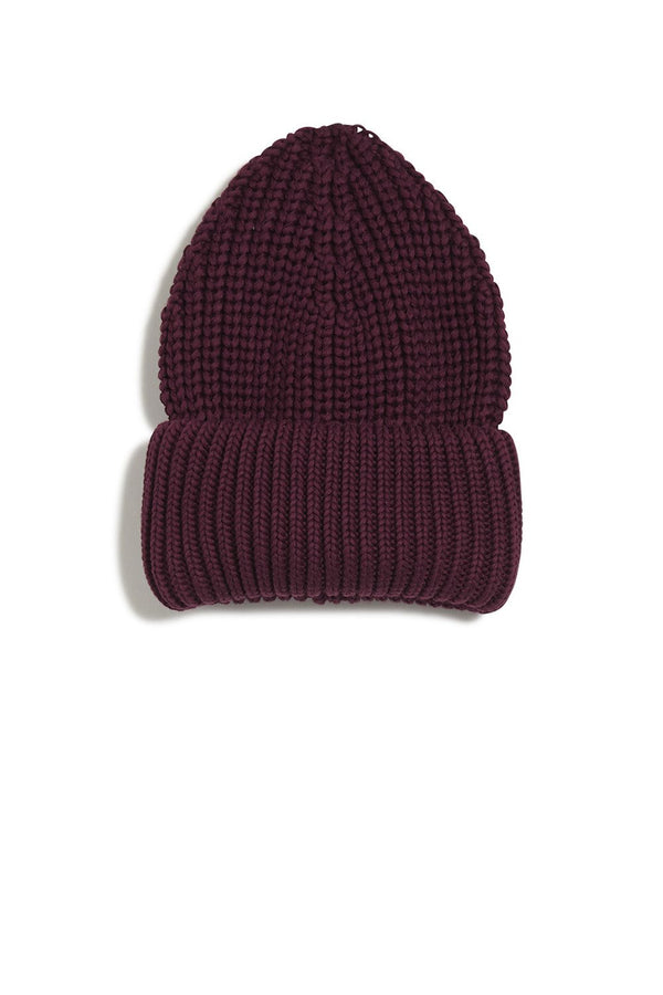 knitted rib beanie in port wine color